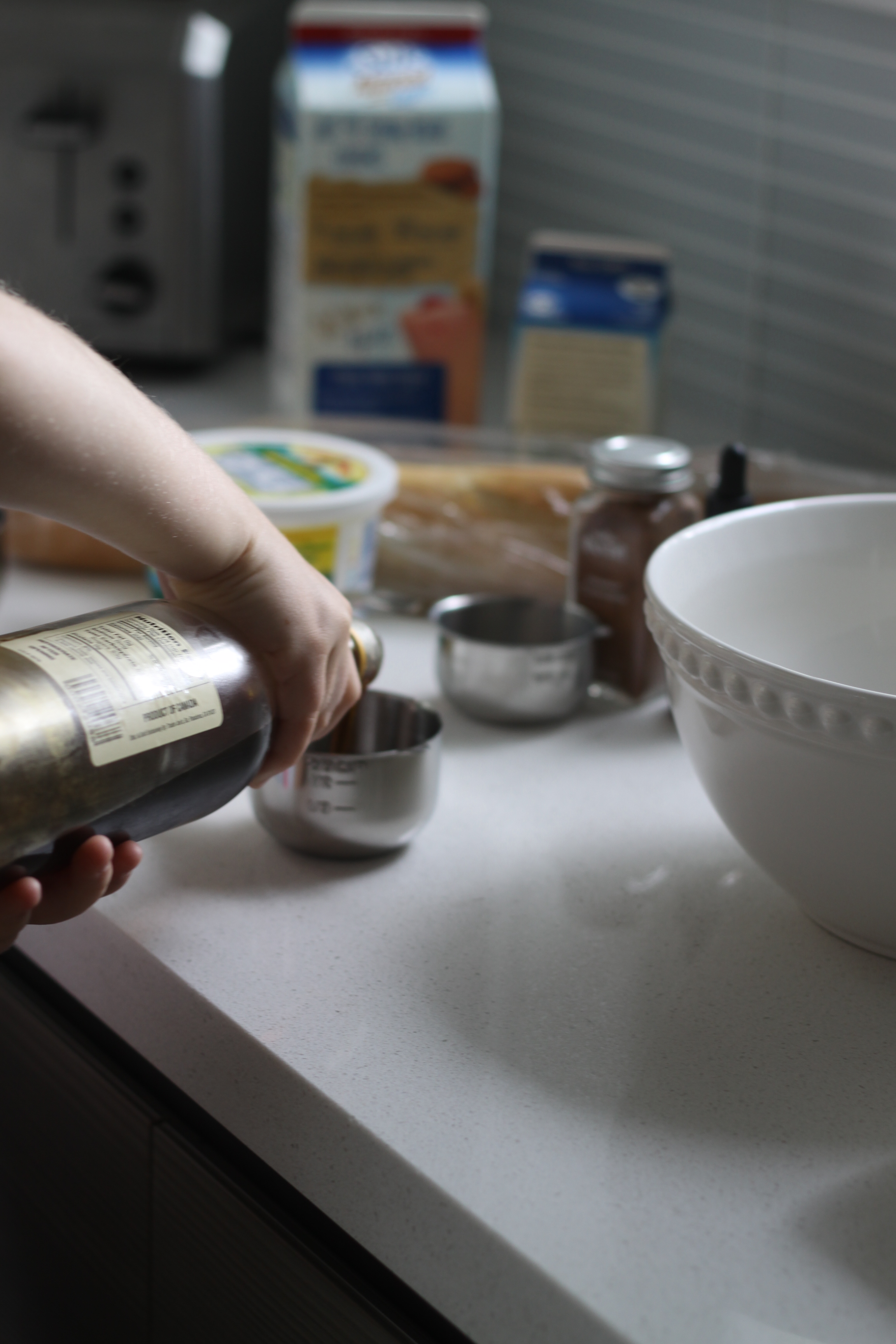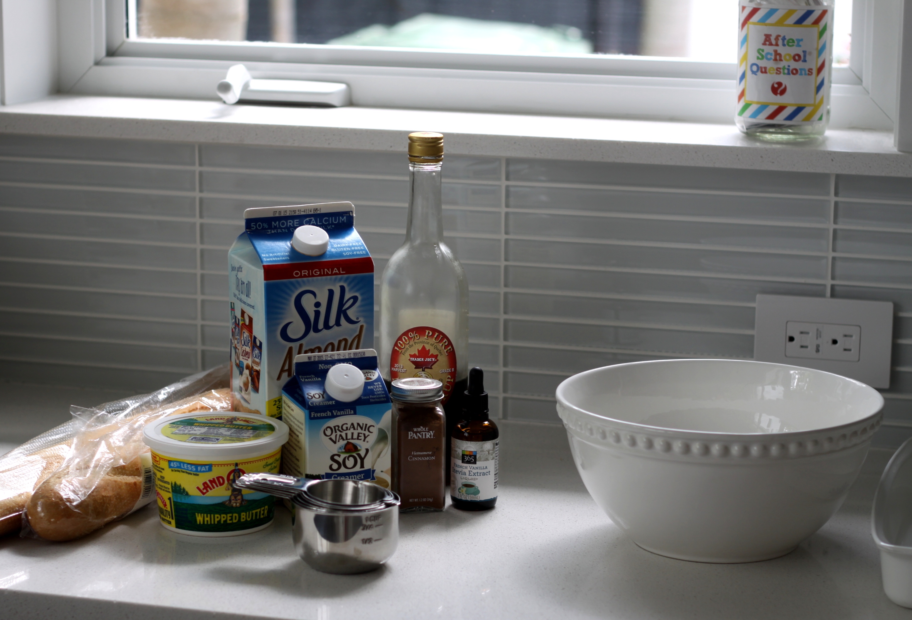 2 cups of almond milk (or any kind of milk) …I actually used 1 cup of light almond milk and 1 cup of soy creamer for a “richer” french toast.