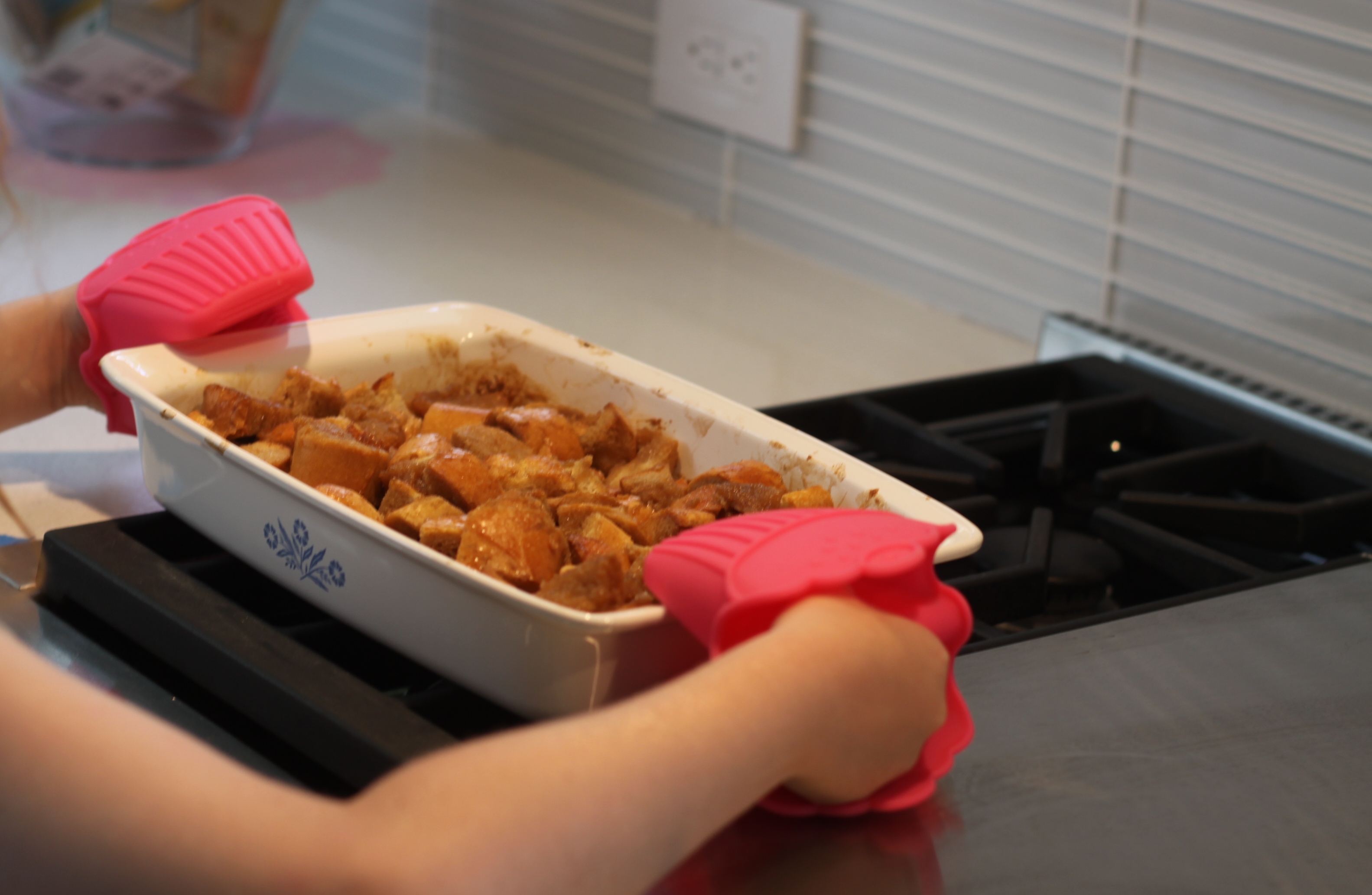 I woke up this morning, brushed my teeth, and walked downstairs to make myself some coffee. As I’m trying to find a coffee mug I hear the sound of little feet running towards me at the speed of light. It’s my little cousin. She’s wearing puffy polka dot shorts that make her resemble a little bumble bee curiously buzzing around. I ask her how Disney World was and she tells me that she had fun, but missed me the whole time. Oh ..My …GAWD! This child knows how to melt my heart! Kids are amazing! I’ve spent the last 6 days with my two little cousins (6 and 9) and I’ve already re-learned so much. They have this beautiful, untainted view of the world and if you listen hard enough, you’ll find that you can gain a lot from what they say and from what they do. These two kids have reminded me to appreciate the little things in life and they’ve also reminded me how to set aside my stress (much of it unnecessary) and have fun! I watch them light up when they see a lizard and it reminds me of the joy that little things brought me when I was a child. It forces me to question why I let the little joys in life blend in with the monotony of adult life to the point where they are almost invisible. In this moment I make a promise to myself to take time every day to appreciate the little things, be it a lizard on a tree or a smile from a stranger. I’m going to appreciate the little things a lot more often. She also reminds me what it is to be genuinely gentle and patient; she catches the lizard and handles him so gently. She speaks to him so kindly and with so much patience! It inspires me to do the same to every creature and every human being. Being gentle, patient and kind are traits to be admired. They are often overlooked and shouldn’t be. So this kind, gentle, and patient little-bumble-bee and I made some “Almost Vegan” Baked French Toast with a leftover baguette that was drying out. It’s “almost” vegan because I used real butter. However, it can be just as tasty if made with vegan butter. Enjoy 🙂