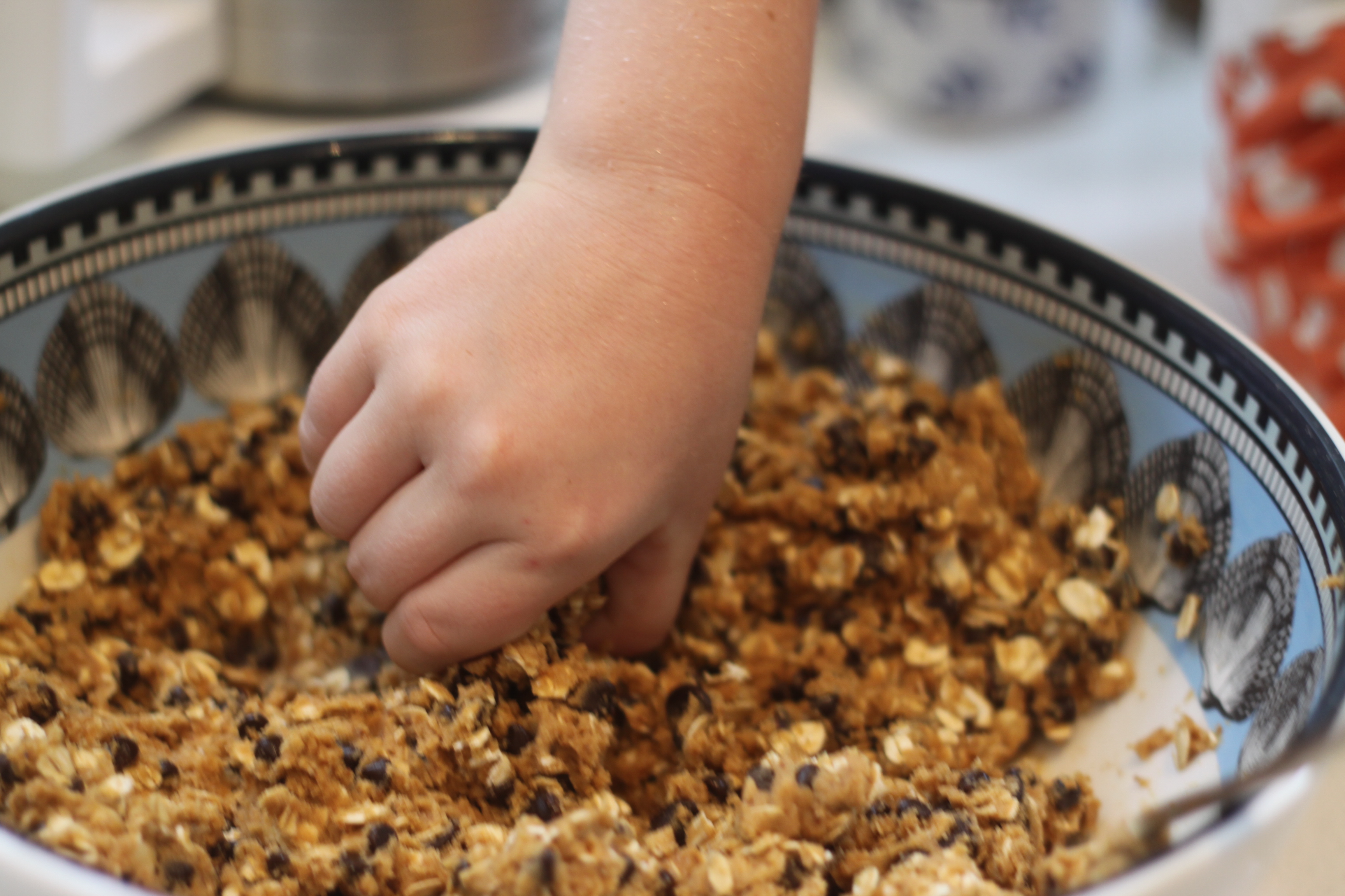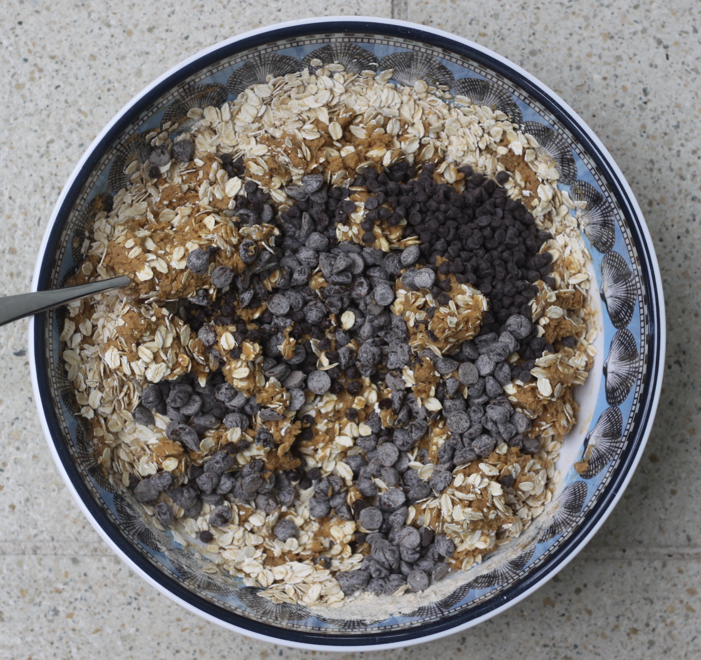 5. Add oats and chocolate chips.
