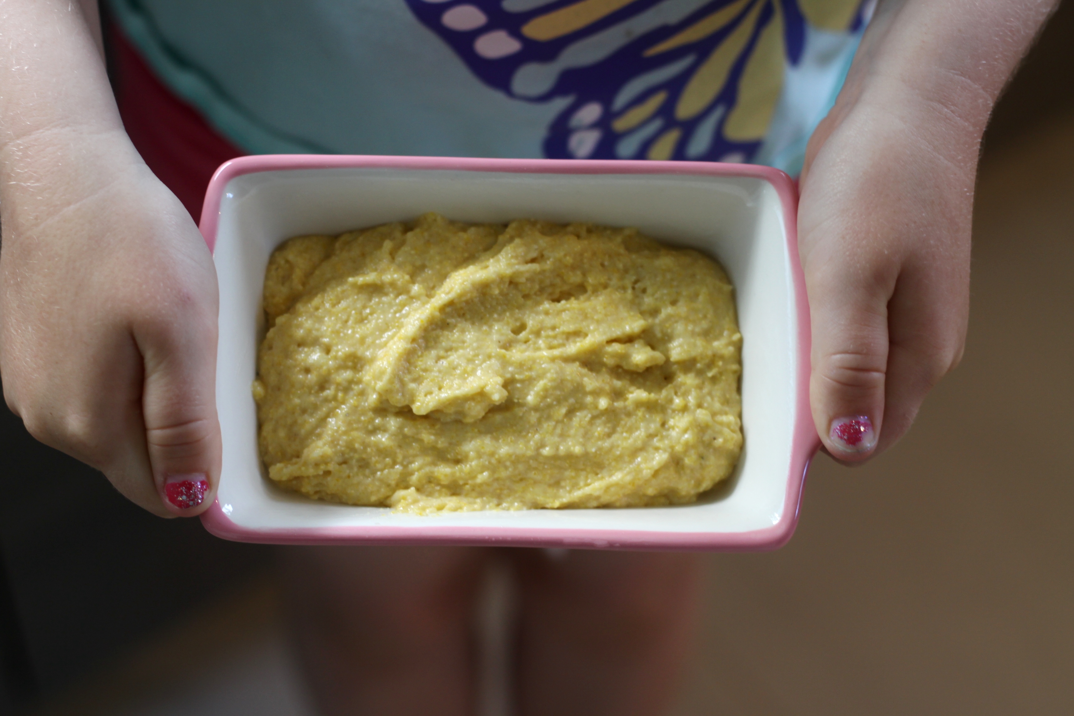 I have a crush on Eastern Texas right now. It’s sick. I’m in Miami which is absolutely GORGEOUS and amazing and I’m day dreaming about Eastern Texas. Yes, Eastern, not Western. Western Texas is what I think about when an old Clint Eastwood movie comes on. Not that I have anything against Clint Eastwood movies, I really don’t, but I do have something against the ambiance: desert, bone dry air and endless horizons of brown dirt interrupted by strings of brown mountains. Eastern Texas is what I think about when a happy country song comes on: farm fields laden with bluebonnets, horses roaming around rusty red barns, rocking chairs teetering on wood-plank porches, deciduous trees gently moving as a cool southern breeze passes through. I suppose this is why I’m day dreaming about Eastern Texas: the breeze. The air in Miami is so hot and thick that the second I step outside I literally feel as though I’ve stepped into a sauna. So, I’m often dreaming about a nice southern breeze and an ice cold glass of coconut milk with cornbread 🙂 This cornbread is so yummy and tastes great topped with vegan butter and a drizzle of honey.