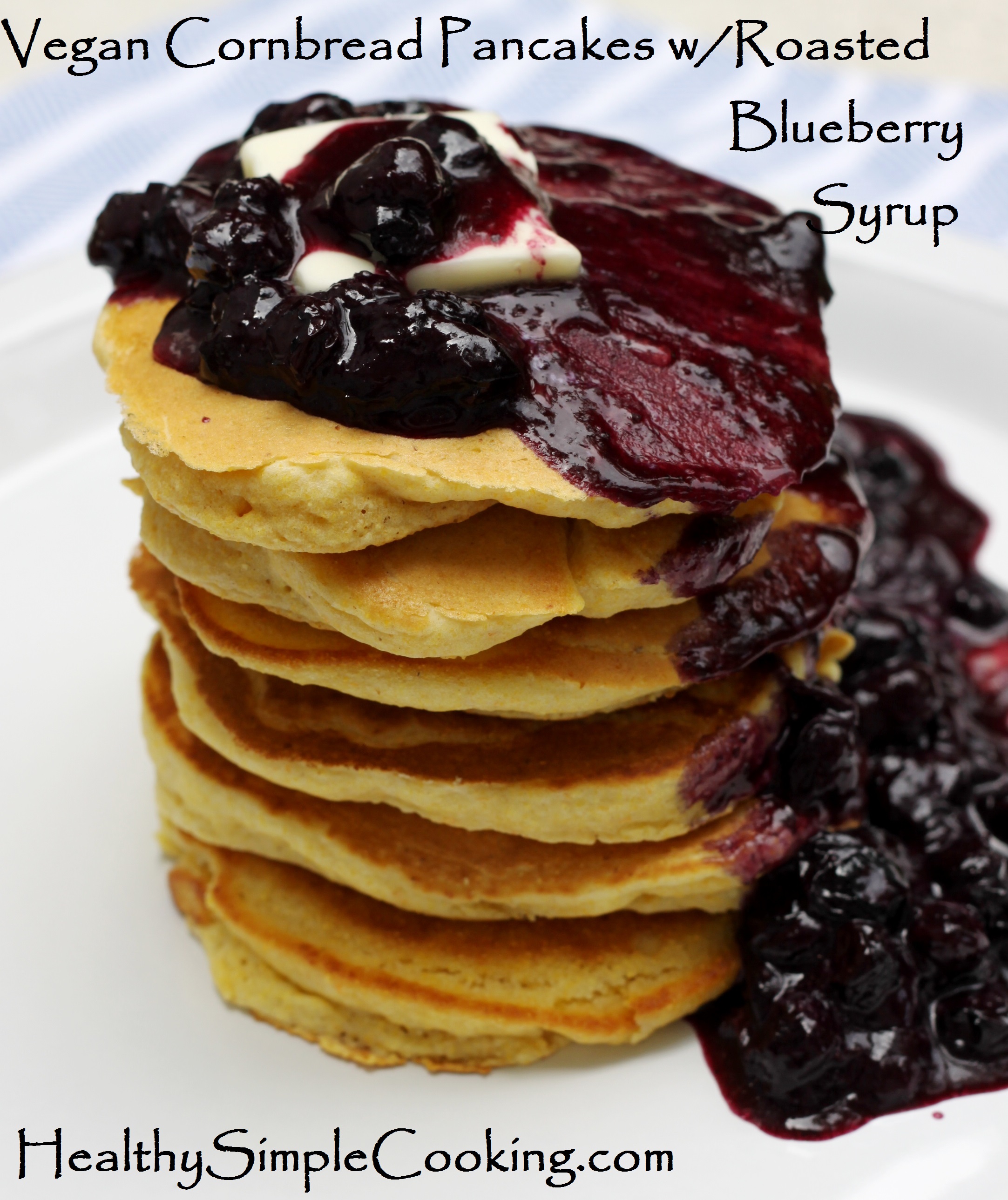 My favorite bookstore resides in Arizona: Changing Hands. It’s a charming little boutiquey second hand bookstore loaded with beautiful, intricate trinkets strategically placed to ignite any retail therapy that you may need. The cook book section is sprinkled with unique little kitchen-gadgets and the children’s section is dusted with glittery fairy-wear so that little girls can feel like they’re a little closer to magic. Did I mention that this bookstore shares its building with one of my favorite bakery-restaurant chains in Arizona? Wildflower Bread Company. Which is, you know, just awesome for someone who has no willpower when it comes to sweets (aka me). I mean, one cannot simply walk into a bookstore that opens up to a bakery without buying a pastry and a coffee …and then maybe another pastry. (Why is it that books, coffee, and pastries go so well together? Boost your brain while you get fat. Sounds good to me!!). Wildflower not only has great pastries, but they have, hands down, the best Greek salad that you will ever eat in the entirety of your human life. I’ve been trying to re-create it and when I do I’m going to blog the shit out of it. Be prepared. Wildflower also provides its customers with the opportunity to experience perfect fluffy pancakes topped with a berry compote. As of recently, I have been craving these pancakes, but do not have the time nor the inclination to fly 2,000 miles across the country to get it, so I’m making them myself. Vegan style. These pancakes are the perfect cornbread pancake. They’re fluffy. They’re tasty and they don’t fall apart (bonus!).